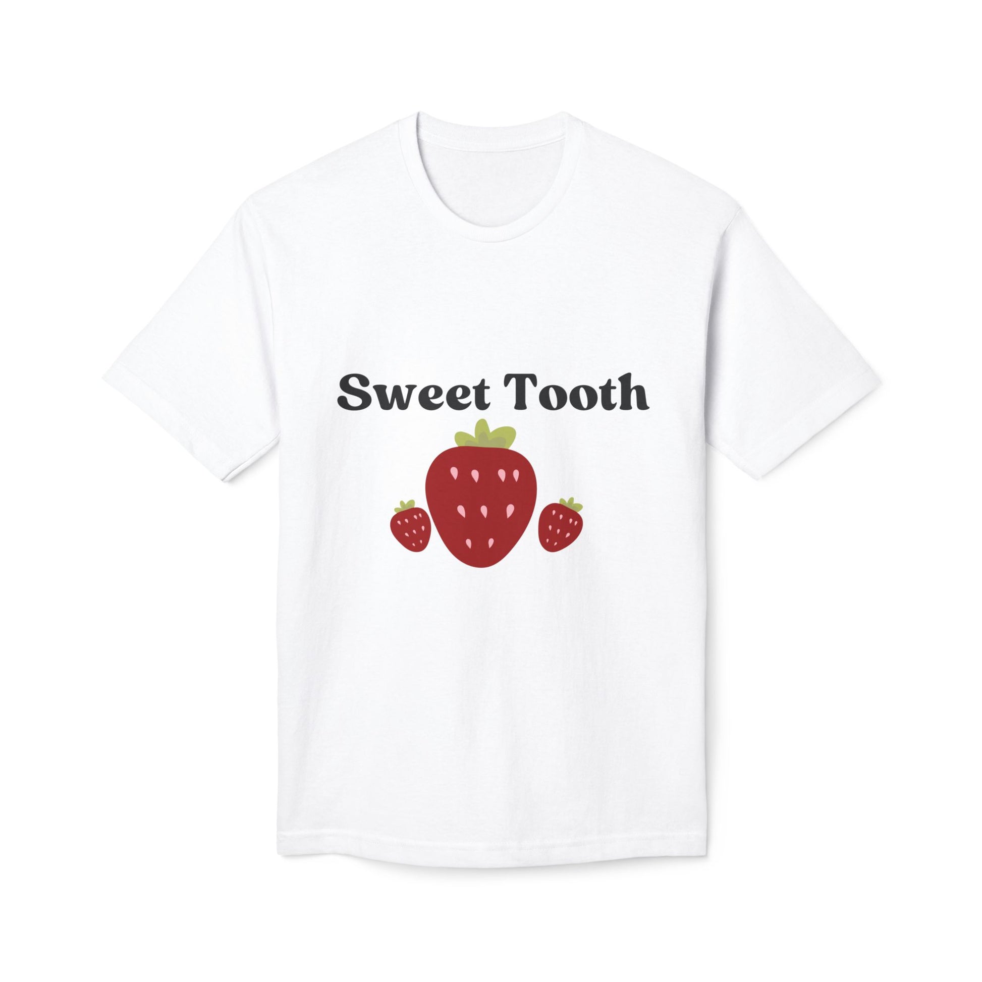 Introducing a stylish Unisex Midweight T-shirt that celebrates your sweet side! With its playful 'Sweet Tooth' design featuring adorable strawberries, this T-shirt adds a fun and lighthearted vibe to your wardrobe. Whether you're enjoying a sunny afternoon with friends or lounging at home, this versatile T-shirt is your go-to choice for comfort and style. Ideal for casual outings, summer gatherings, or cozy nights in while indulging in your favorite treats. This T-shirt makes a delightful gift for food lovers, casual wear enthusiasts, and anyone looking to spread a little joy during celebrations like birthdays, picnics, and holidays. Elevate your everyday look with this charming piece, made right here in the USA!